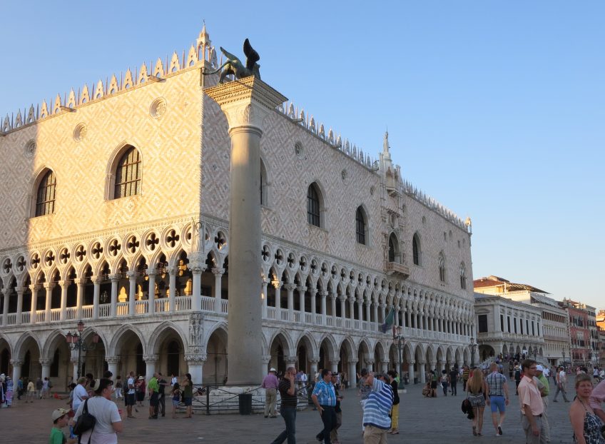 IMG_1950 Published June 10, 2016 at 3580 × 2630 in 60 Days in Europe: Day 12 / June 10 Venice: The Doge’s Palace. The Duchess dove at the Duke just when the Duke dove at the Doge. Now the Duke ducked, the Doge dodged, and the Duchess didn’t. So the Duke got the Duchess, the Duchess got the Doge, and the Doge got the Duke.