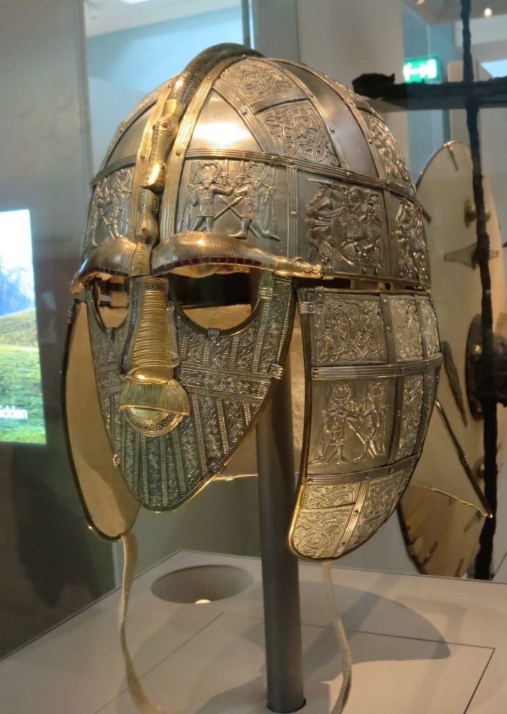 IMG_4020 (Custom) Published July 9, 2016 at 1065 × 1500 in IMG_4020 (Custom) London: British Museum, Sutton Hoo ship burial (early AD 600s), Helmet replica showing how it appeared when new.