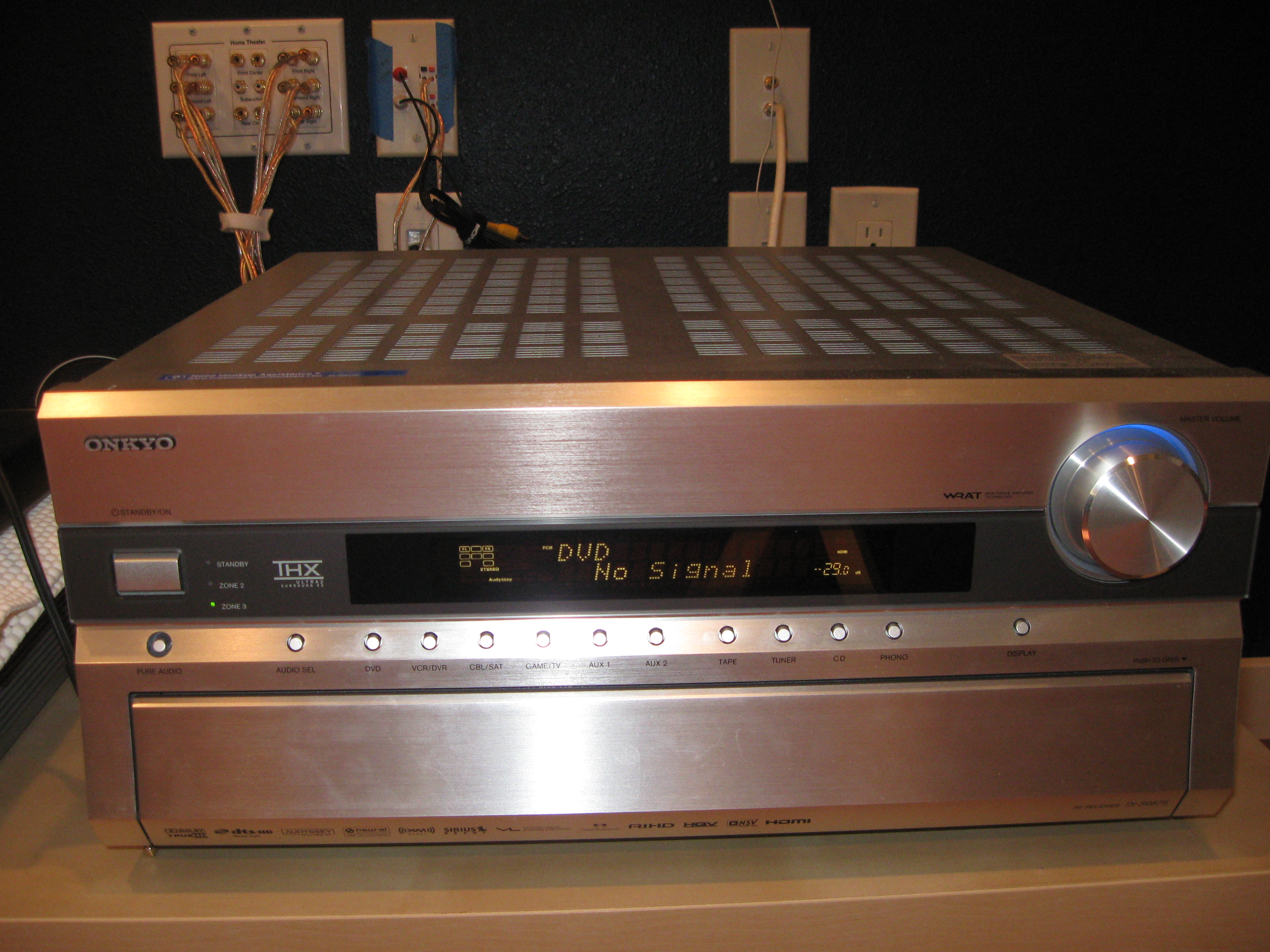 Receiver Setup: The Onkyo SR-TX875 is a pretty sophisticated piece of gear, and the setup took hours. I won’t bore you with the details (or is it too late for that?). One I would mention: calibrating the speakers was easy, because it comes with the Audyssey MultEQ XT calibration system. It features a mic that you plug into the receiver and place in the various listening positions. At each position the receiver emits a sound through each speaker in turn. The mic picks up the sound from each speaker and automatically adjusts the volume for that speaker. Very cool.